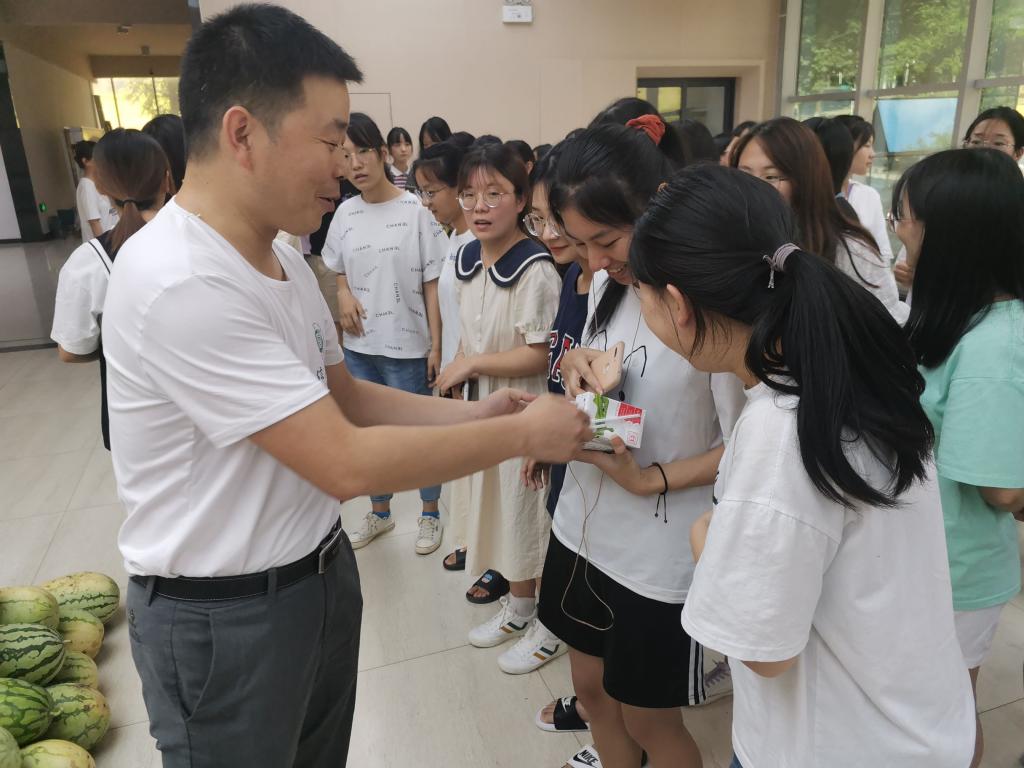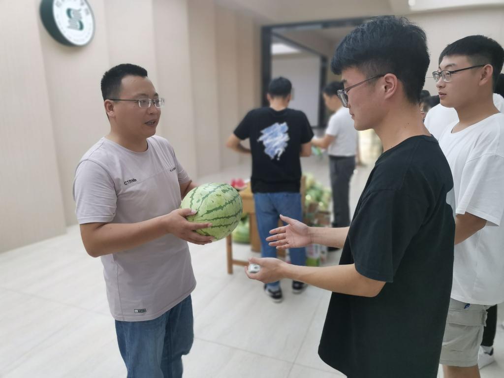 最后,举行了暑期考研学生慰问活动。参加活动的领导、老师向学生发放了西瓜、牛奶等清凉营养食品,并鼓励大家互帮互助,戒骄戒躁,保持身心健康。
