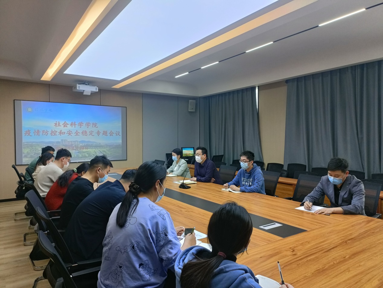 为抓好常态化疫情防控,进一步提升学院网格化管理工作,精准推动各项防控措施有力有效落实。太阳成集团tyc539于4月28日上午在社科楼419会议室召开疫情防控和安全稳定专题会议。学院领导班子成员、各教研室主任、全体辅导员参加了本次会议。会议由党总支副书记胡志国主持。