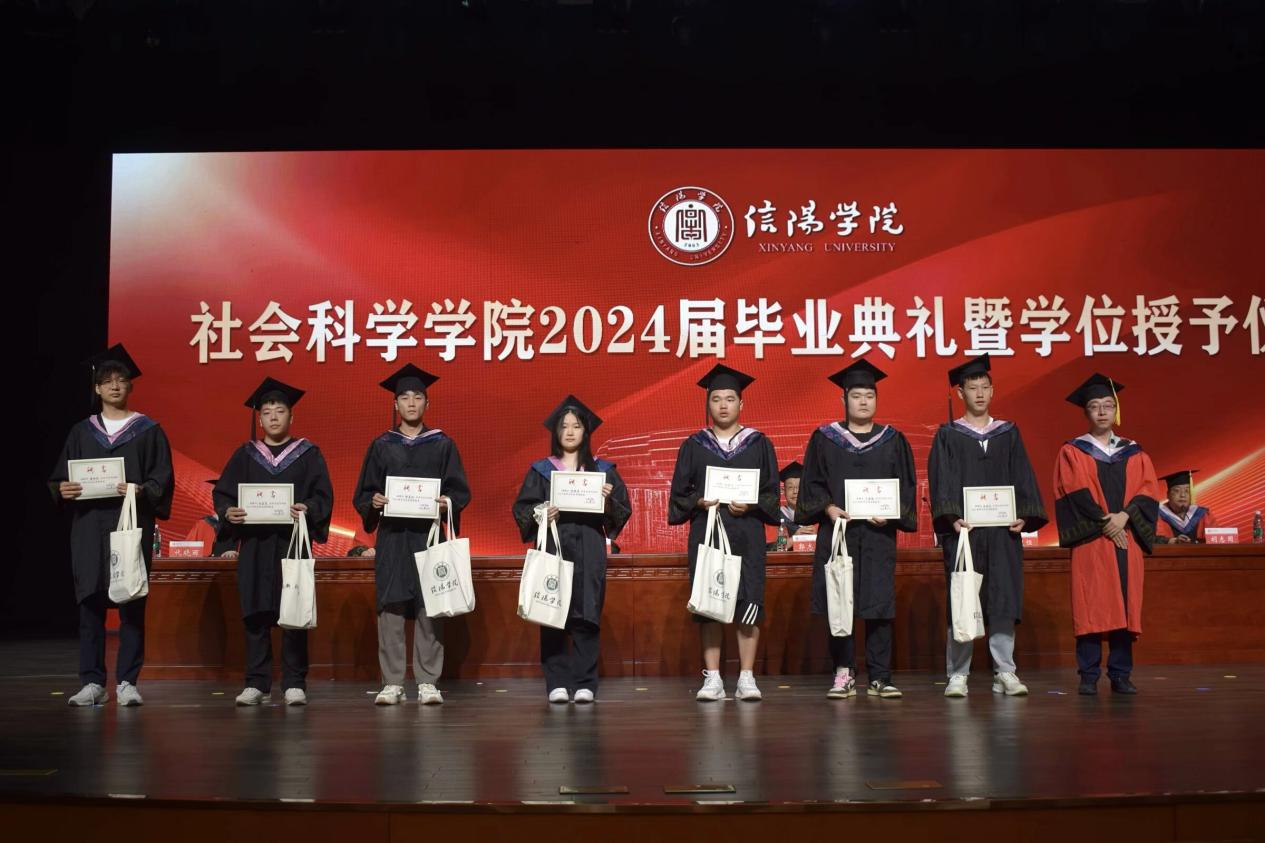 毕业典礼在庄严的国歌声中拉开序幕。寇博文宣读《太阳集团关于授予2024届本科毕业生学士学位的决定》,胡志国宣读《关于授予太阳成集团tyc5392024届优秀毕业生荣誉称号的决定》。学院领导和各位专家分别为获奖同学和校友联络员颁发证书,为全体毕业生正冠拨苏并合影留恋。