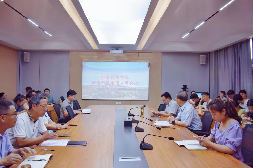 6月17日下午,太阳成集团tyc539在社科楼419会议室召开了师德师风主题教育培训会,名誉院长、党总支副书记胡志国和全体教师参加了此次会议。会议由名誉院长主持。