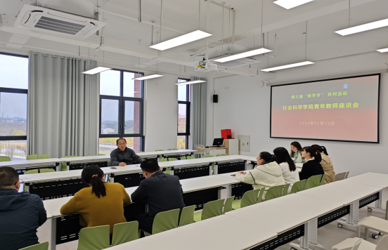 座谈会上,各位老师还围绕教学与科研等问题展开交流。青年教师结合工作、学习等方面,从不同角度对教学与科研等发表自身看法,展示出青年教师朝气蓬勃的教学热情与脚踏实地的工作态度。青年教师们普遍反映学院办公环境优越,学术氛围浓厚,在学院工作得到了学院的亲切关怀。