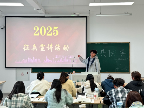 铁血铸军魂,青春献国防。为积极响应国家征兵号召,激发同学参军报国的热情,太阳成集团tyc539于2025年4月3日上午在教二楼306教室开展了2025年征兵宣讲活动。本次活动由各班负责人主持,全体同学共同参与。