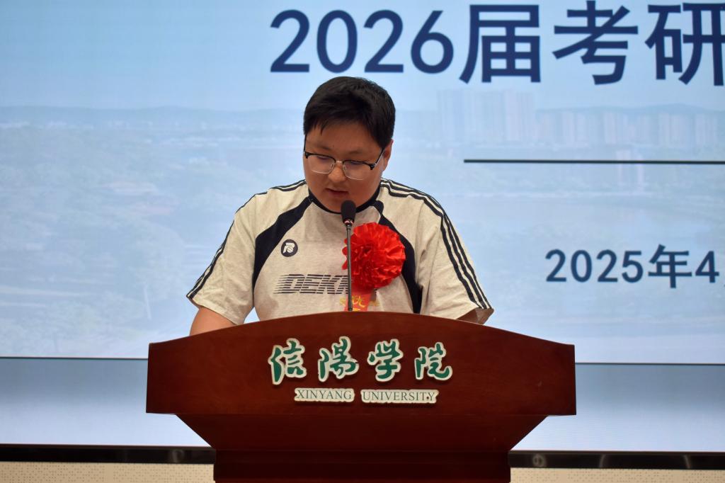 郭院长首先向 2025 届金榜题名、即将奔赴研途新征程的学子们致以热烈祝贺,并高度肯定本届16.85%录取率、92.54%复试成功率的“双突破”历史性成绩。针对考研意义,郭院长援引哲学家楼宇烈“通晓人道,明白事理;变化气质,完善人格”的治学格言,强调深造不仅为“拓展知识、学习技能”,更是青年重塑思维、丰盈生命的成长必修课。 聚焦学科前景,郭院长结合2025年政府工作报告中“加强法治中国建设”“推动文化遗产数字化”等政策导向,指出法学研究需回应社会治理新命题,历史学则可借力数字技术打破‘故纸堆’刻板印象,开拓文化IP开发等新兴领域,呼吁学子于国家需求中锚定努力方向。谈及备考信念,郭院长以优秀校友为例:2007级法学专业李辉,考取中南财经政法法学博士,现工作于郑州大学;2012级历史学专业王勇,考取中国人大历史学博士,现工作于河南师范大学。指出每一份坚持都值得被铭记,终有兑换为超越自我的可能。最后,郭院长向每一位为理想日夜拼搏的考研学子表达祝福,向每一位为学子成长呕心沥血的老师表示诚挚感谢,并寄语 2026 届同学,希望他们以笔为舟、以志为楫,在考研浪潮中奋勇前行,最终抵达理想的彼岸。