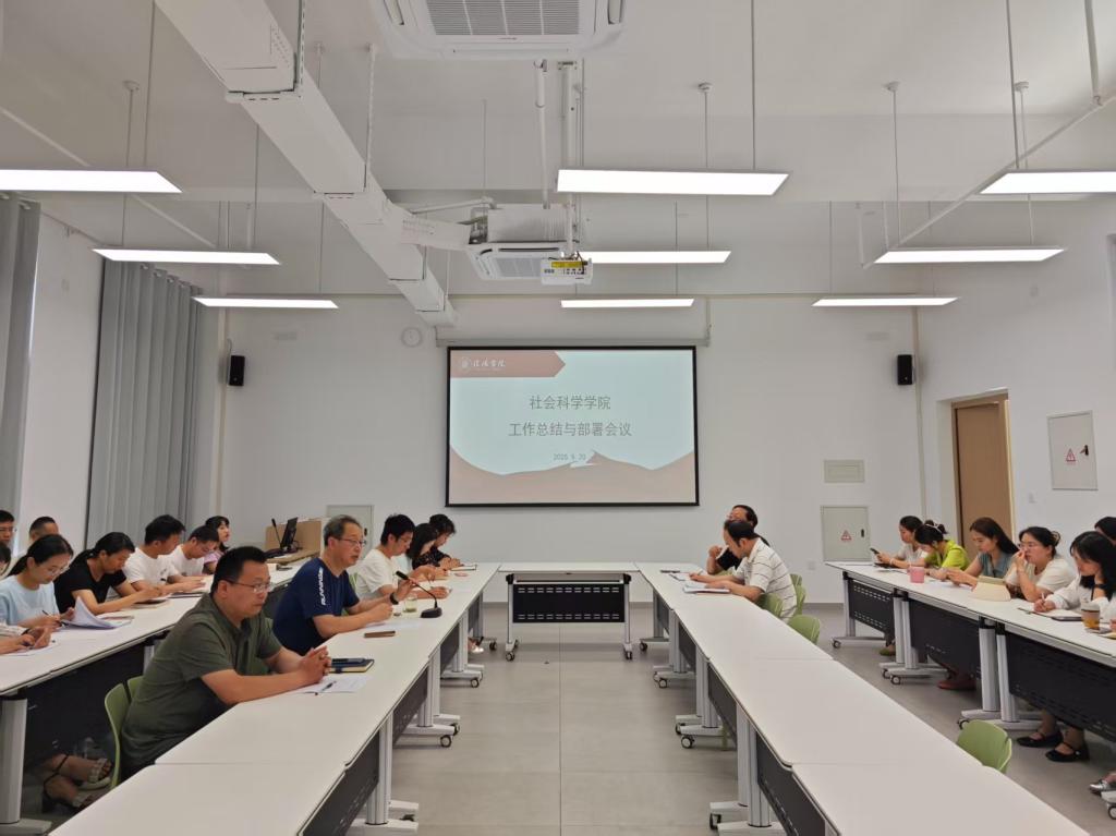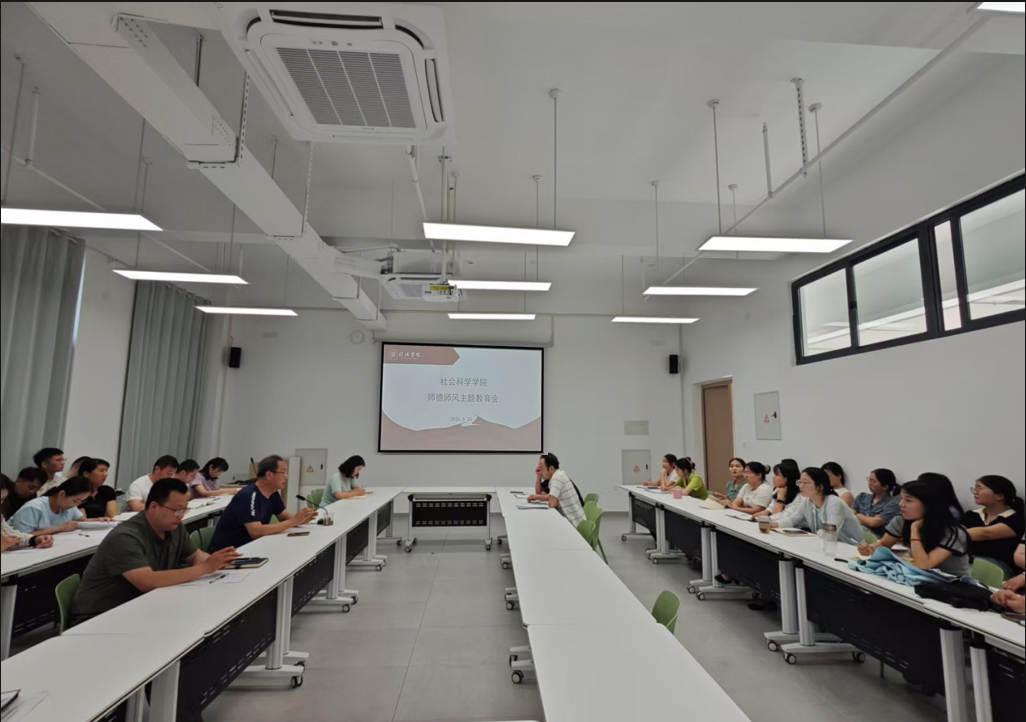 郭志祥作总结讲话。他充分肯定了教师们前期在各项工作中的辛勤付出,特别表扬了历史学专业教师为推进师范专业认证所做的努力,称赞学生管理团队在面对学生工作棘手问题时迎难而上的担当精神,以及陈光老师在数字法学课程建设方面的积极探索。郭院长对全体教职工提出三点要求:一是严守教学规范,落实立德树人。他强调,全体教师在执行教学规定和规范时必须严格落实,不打折扣,牢牢守住教学这一学院和教师的立足之本。这要求教师以严谨的态度对待教学工作,将立德树人融入到每一个教学环节中,以良好的师德师风为学生树立榜样,确保教学工作的高质量开展。二是深耕教研领域,追求协同发展。鼓励教师深耕教学与科研领域,实现个人与学院协同发展。期望每位教师在 三至五年内显著提升教科研水平,在追求个人进步的同时,为学院发展贡献力量,践行师德师风对教师专业发展的要求。三是树立忧患意识,主动对标学习。指出学院目前存在的不足,要求全体教师勇于面对自身不足,不断提升自我,以积极向上的态度和行为,展现良好的师德风范,推动学院整体发展。