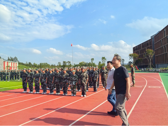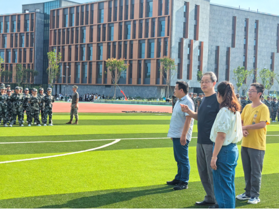 在检查过程中,学院领导代表学院向承担军训教学任务的教官们致以诚挚感谢,肯定其辛勤投入与科学专业的指导工作;也对全程坚守岗位、陪伴新生参与军训的辅导员们给予赞扬,对大家认真负责的工作态度与细致周到的服务工作表示肯定。