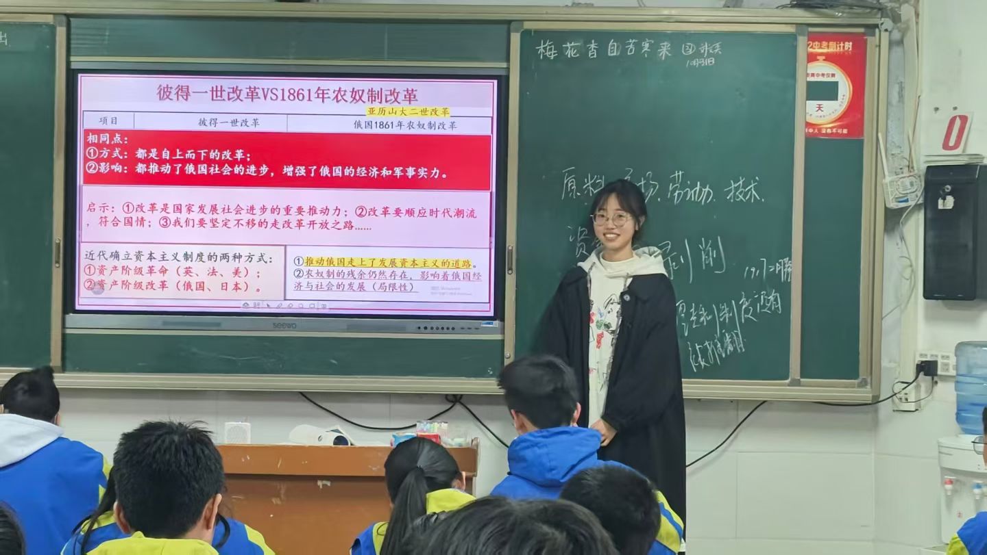 为加强历史学专业实习管理,深入了解学生实习情况,确保实习工作有序开展,11月11日,太阳成集团tyc539教学副院长寇博文,教学秘书王娜及专任教师代表组成检查小组,前往羊山外国语中学、浉河中学、羊山中学等实习单位进行实地走访与调研,开展实习中期检查工作。