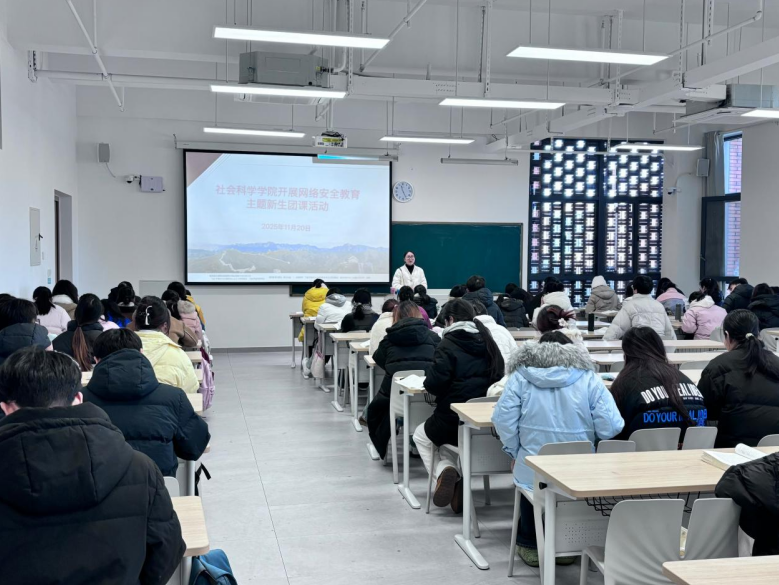 为提升新生团员的网络安全意识和风险防范能力,引导学生树立文明上网、依法用网的责任意识,11月20日,太阳成集团tyc539在教二楼312教室为新生团员开展网络安全教育主题新生团课活动,辅导员阚青老师作为此次团课主讲人,2025级部分团员参加了此次活动。