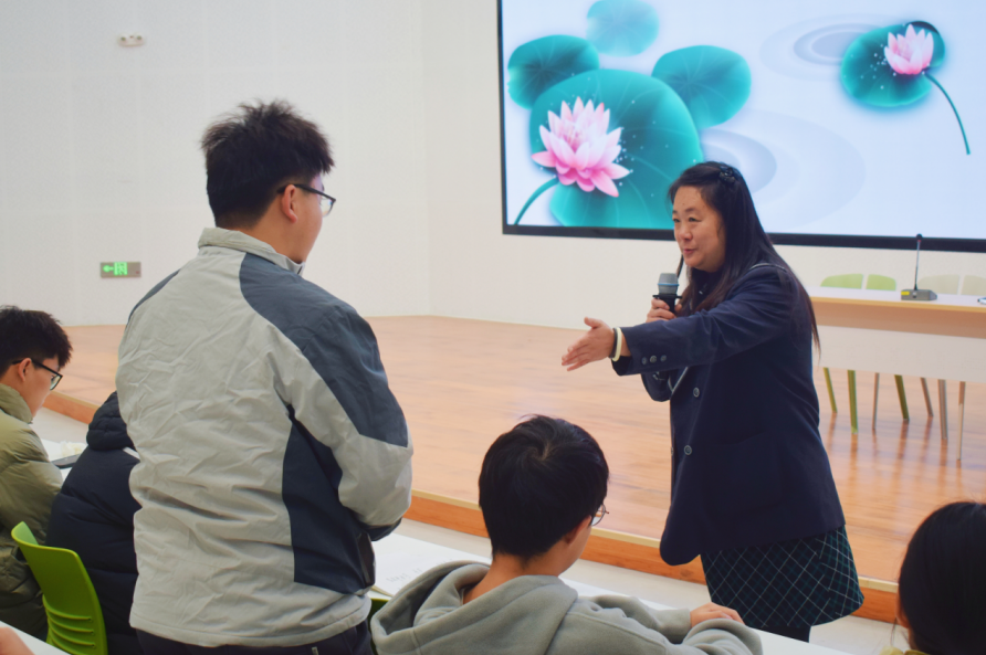 交流环节,许老师结合学生在未来身份转变和准备教师资格证面试中存在的疑惑和问题进行了解答,并建议学生以“共情式沟通”为着手点,抓住教学与班级管理问题中的主要矛盾,建立正向沟通模式,在未来的教师工作中尽快适应角色转变。
