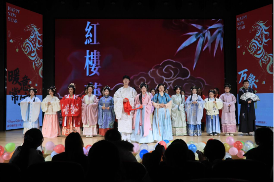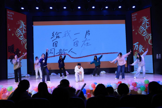 紧接着,小品《反诈银行》爆笑登场,在元旦佳节的热烈氛围里,用诙谐剧情敲响反诈警钟,提醒师生新年期间提高防范意识;小品《时间都去哪了》聚焦现实、直击人心,在妙趣横生的演绎中饱含温情与共鸣;舞台剧《红楼梦》、经典情景喜剧《家有儿女》、舞蹈《光影转场,能量变装》与《爱之回响,热烈启航》轮番登台,全方位彰显出社科学子们丰富的艺术创造力和表现力。