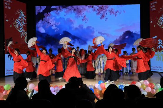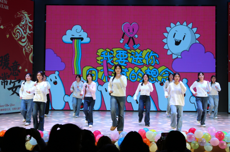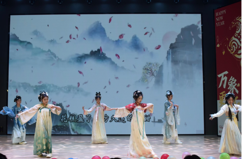 下一个环节,各类节目轮番登场。大学生艺术团合唱《我乘着风飞过来》,尽显青春意气;歌曲《宠爱》,旋律悠扬、治愈暖心;相声《新说元旦》脑洞大开,以幽默解构节日,笑点密集;汉风国韵社的《小城谣》舞姿翩跹,将国风雅致娓娓道来,赢得阵阵掌声。