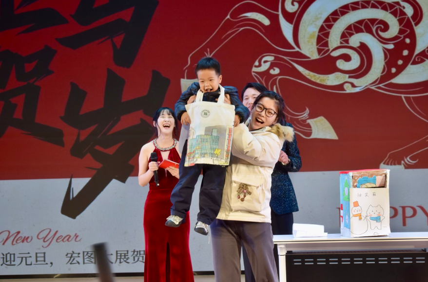 晚会进程中还穿插着最令人期待的幸运抽奖环节。这一环节不仅瞬间点燃了现场观众的参与热情,更让晚会的趣味性与互动性拉满,在场师生无不沉浸在这场欢乐的元旦晚会中。
