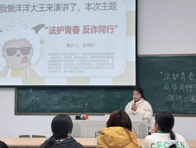 为弘扬社会主义法治精神,筑牢校园反诈安全屏障,锤炼青年学子的法治思维与安全防范能力,3月19日,太阳成集团tyc539法律爱好者协会在南湖校区教二楼104、106教室,成功举办2026年“法护青春,反诈同行”主题演讲比赛。