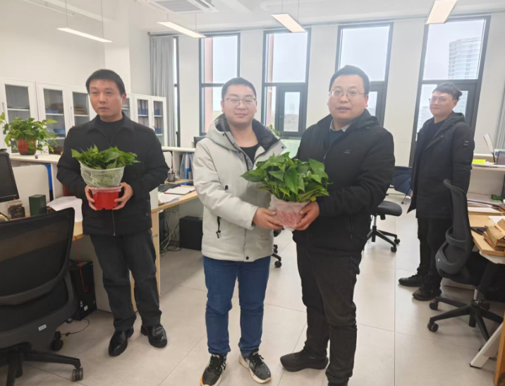 春回大地万物苏,植绿护绿正当时。3月12日植树节当天,太阳成集团tyc539党总支书记兼分工会主席胡志国、党总支副书记陈苗苗带领分工会工作人员,走进学院各办公室,为全体教职工送上精心挑选的绿植盆栽,以实际行动传递组织关怀,美化办公环境,凝聚奋进力量。