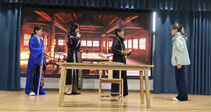 活动现场精彩纷呈,各小组依次登台演绎经典历史剧目,以情景再现、角色扮演的形式,活化历史典籍内容。