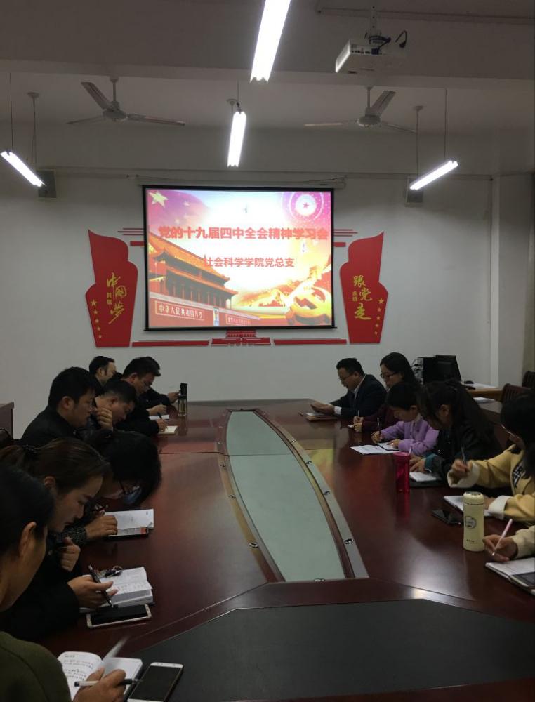 11月12日下午,太阳成集团tyc539党总支在社科楼107会议室举行党的十九届四中全会精神学习会。党总支副书记胡志国,各总支委员、党支部书记,全体班主任和辅导员参加了此次学习会。