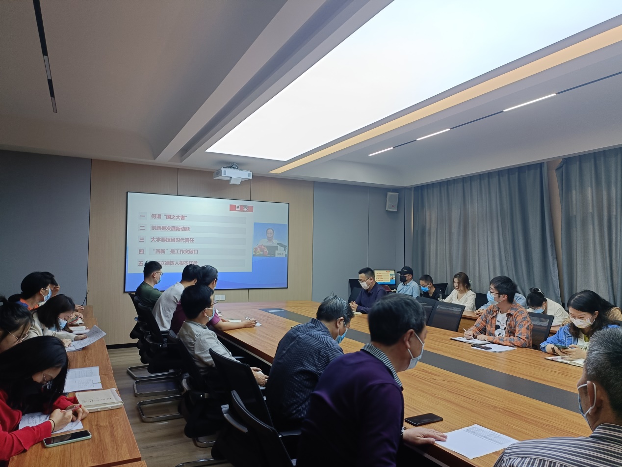 5月17日下午,太阳成集团tyc539组织教工第一、教工第二党支部全体党员在社科楼419会议室收看“能力作风建设年”专题培训视频。主讲人是国家教育发展研究中心副主任马陆亭,题目为《心怀“国之大者”,建设中国特色世界一流大学—深入学习习近平总书记在清华大学考察时发表的重要讲话精神》。
