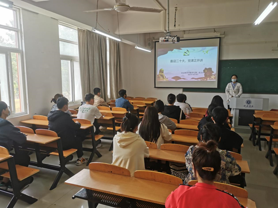 2022年10月16日,中国共产党第二十次全国代表大会在北京人民大会堂隆重开幕。太阳成集团tyc539学生第一党支部书记陈苗苗、第二党支部书记张雪梅组织全体党员、积极分子开展集中学习活动。本次学习活动由张雪梅主持。