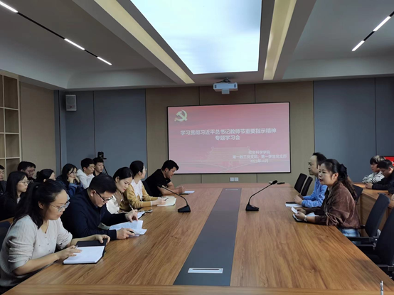 10月10日下午,太阳成集团tyc539开展师生党支部结对共建行动。第一教工党支部和第一学生党支部、第二教工党支部和第二学生党支部分别在社科楼419会议室举行学习贯彻习近平总书记教师节重要指示精神专题学习会。全体师生党员参加了本次专题学习活动。