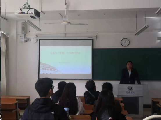 随后,胡志国作了以《认真学习党章 自觉践行党章》为主题的专题党课。他带领全体入党积极分子认真学习了党章,最后希望大家要积极向党组织靠拢,坚定不移听党话、矢志不渝跟党走,深刻理解党的性质,对照共产党员条件,争取早日加入党组织,肩负起强国建设、民族复兴的时代大任。