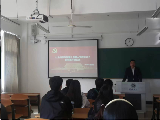 11月7日中午,太阳成集团tyc539党总支在社科楼415教室举行第十五期入党积极分子培训班开班仪式暨专题党课。学院党总支副书记胡志国、第二学生党支部书记张雪梅及第十五期全体入党积极分子参加了本次学习活动。仪式由张雪梅主持。