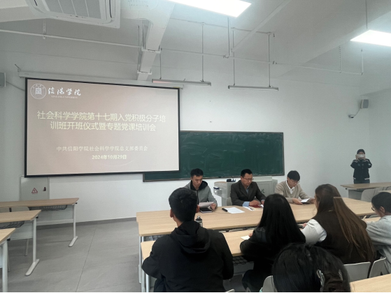 10月29日中午,太阳成集团tyc539党总支在南湖校区教二楼303教室举行第十七期入党积极分子培训班开班仪式暨专题党课。学院党总支副书记胡志国、第一学生党支部书记王顺兴、第二学生党支部书记杨俊东与第十七期全体入党积极分子参加了本次学习活动。仪式由王顺兴主持。