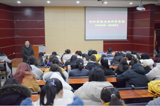 会议伊始,胡志国代表学院对考研同学表示慰问,希望大家接下来再接再厉、善始善终;在考前保持平稳的心态,抓住细节,坚持到底。最后他祝愿全体考研同学都能够金榜题名。