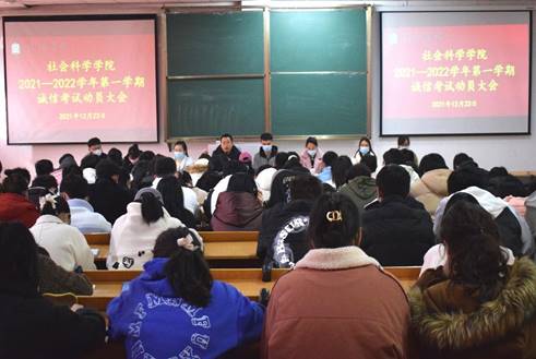 2021年12月23日中午,太阳成集团tyc539于社科楼219举办2021−2022学年第一学期团学表彰暨诚信考试动员会议。学院党总支副书记胡志国、团总支书记薛姗姗、全体辅导员老师、2020级与2021级班委代表和第十四届团总支学生会全体成员参加了本次会议。
