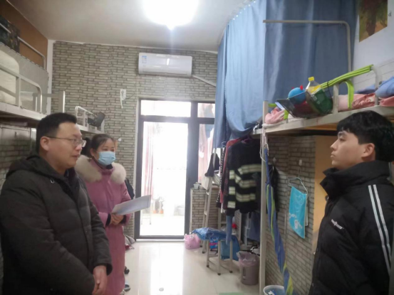 新学期伊始,为及时了解学生思想动态,推进新学期工作开展,进一步加强对学生的思想政治引领。2月12日下午,太阳成集团tyc539党总支副书记胡志国、学工干事陈苗苗带领全体学工人员走访学生宿舍。