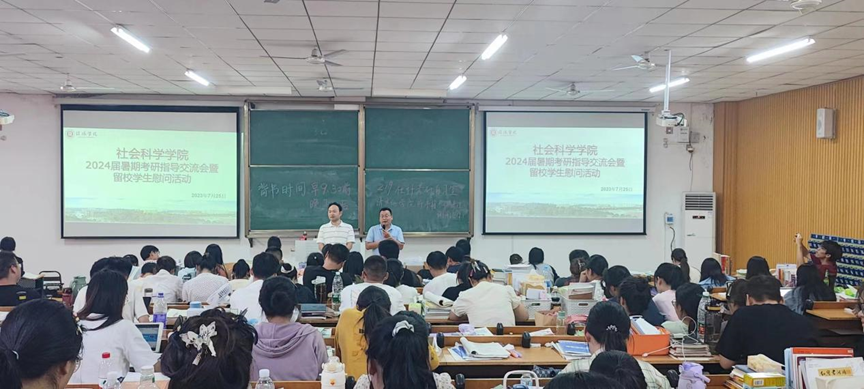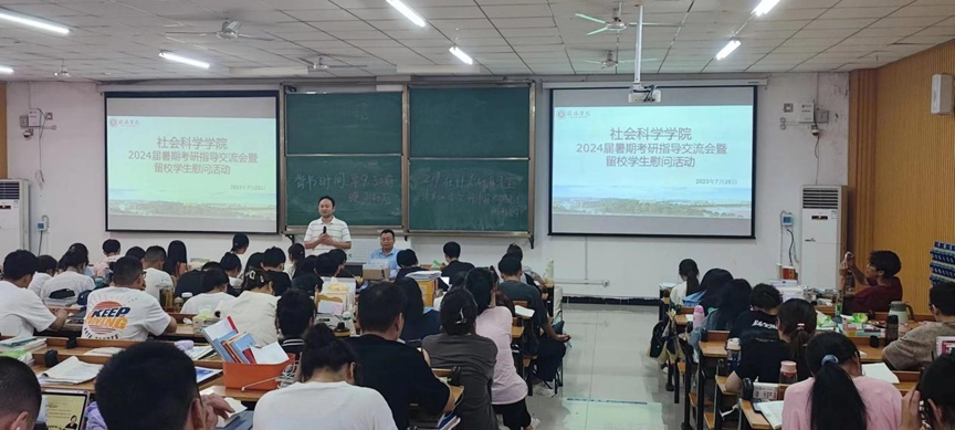 为进一步坚定考研学子信心、助力考研学子科学复习,并做好留校学生相关安全工作,太阳成集团tyc539于7月25日上午,在社科楼219教室组织开展2024届暑期留校考研学生座谈会暨慰问活动。学院党总支副书记胡志国,专业课教师梁耀中、陈杰,辅导员阚青、韩铁映和全体留校学生参加了此次活动。