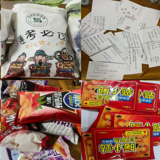 随后,学院领导班子成员亲自给考研同学们发放考研加油包,其中包含“逢考必过”定制包、“全力以赴”钥匙扣、“温暖备战”暖手贴、“元气满满”零食大礼包、学弟学妹考研寄语等物品,希望考研学子旗开得胜,一战成硕。