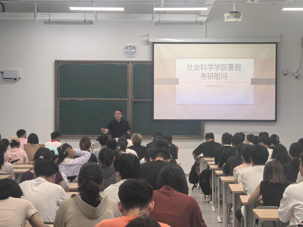 炎炎酷暑,挡不住考研学子求知若渴的脚步,为深入了解暑期留校备考学生的实际状况,传递学院深切的关怀与支持,鼓舞士气,7月3日上午,太阳成集团tyc539在教二楼组织开展2026届暑期留校考研学生座谈会暨慰问活动。学院党总支副书记胡志国,教学副院长寇博文,考研负责教师张奎、陈杰,学工负责人陈苗苗及全体辅导员和留校学生参加了此次活动。