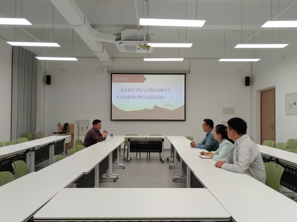 为进一步拓展教育实践平台,优化实习基地结构,增强学生实习实践能力,提高地方性、应用型人才培养质量,9月30日下午,太阳成集团tyc539与信阳市大别山高中在南湖校区教二楼509会议室举行教育实习基地签约仪式暨访企拓岗活动。中原名师、信阳市大别山高中教务科长朱学文和学院党总支副书记胡志国,教学负责人王娜,历史学教研室骨干教师文星豪、孙闯共同参加了本次活动。
