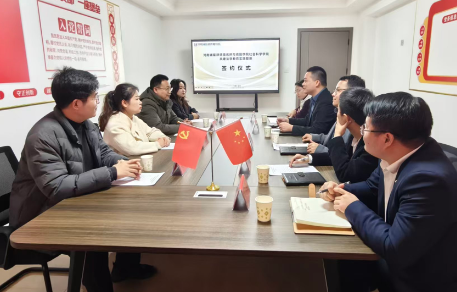 签约仪式现场,双方共同签署了《联合建设法学教育实践基地协议书》。活动期间,学院领导老师还和在河南辅臣律师事务所执业的我校校友韩崇林律师进行了亲切交流。