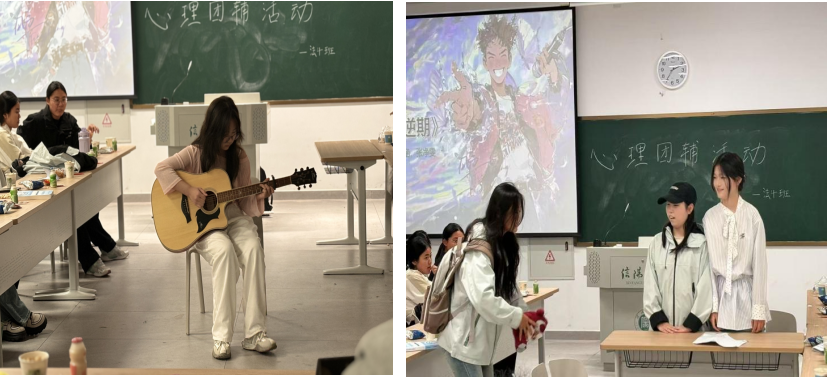 在“心灵共鸣坊”环节,戏精附体,压力解体——做一次心灵的SPA。同学们通过沉浸式体验《杀猪》《刀鞘》等剧本,在推理剧情中感悟心理成长的力量。通过角色的情感体验和决策过程,增强同学们的自我认知和情感表达。在游戏互动中同学们学会理解他人,提升同理心,有助于建立和谐的人际关系。同时剧本推理过程也有效地培养了学生面对困难时要学会冷静分析,增强心理韧性,灵活的应对各种压力和困难。