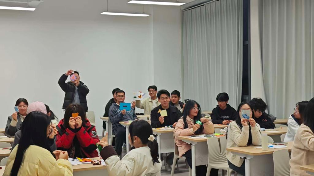 在 “破冰暖场” 环节,故事接龙与情绪演绎是第一个人开始讲一个简短的故事开头,内容要包含一种情绪。下一个人接着故事往下讲,也要体现一种情绪,并且故事要连贯依次进行,直到所有人都参与过。可以挑选一些关键情节,让参与者用表演的方式演绎出来。有同学加入自己的专属动作,有的同学模仿可爱的小动物,有的同学设计了幽默的手势,引得现场笑声不断。这个简单的游戏不仅让大家快速熟悉彼此,更让班级的氛围瞬间升温,为后续活动的开展奠定了良好基础。