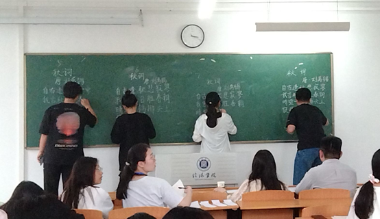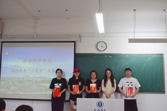 比赛伊始,主持人宣读了本次比赛的评分标准以及比赛规则。在比赛过程中,各位参赛同学认真书写,一丝不苟,充分展现了汉字之美。然后,各位评委老师对同学们的作品进行打分、点评同学们的表现。最后,进入颁奖环节,评委老师对每组获得优秀奖、一等奖、二等奖的同学颁发荣誉证书,并给予肯定和鼓励。