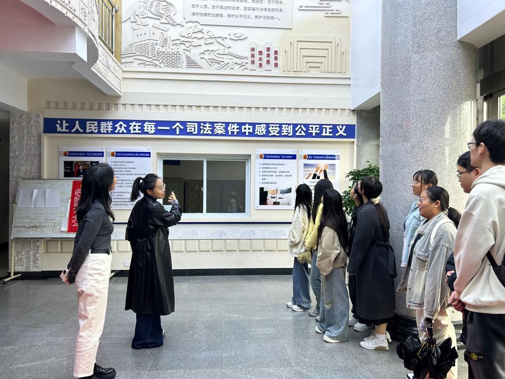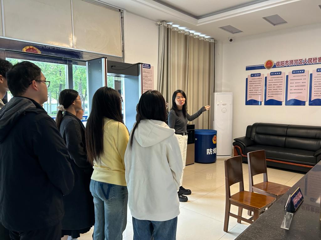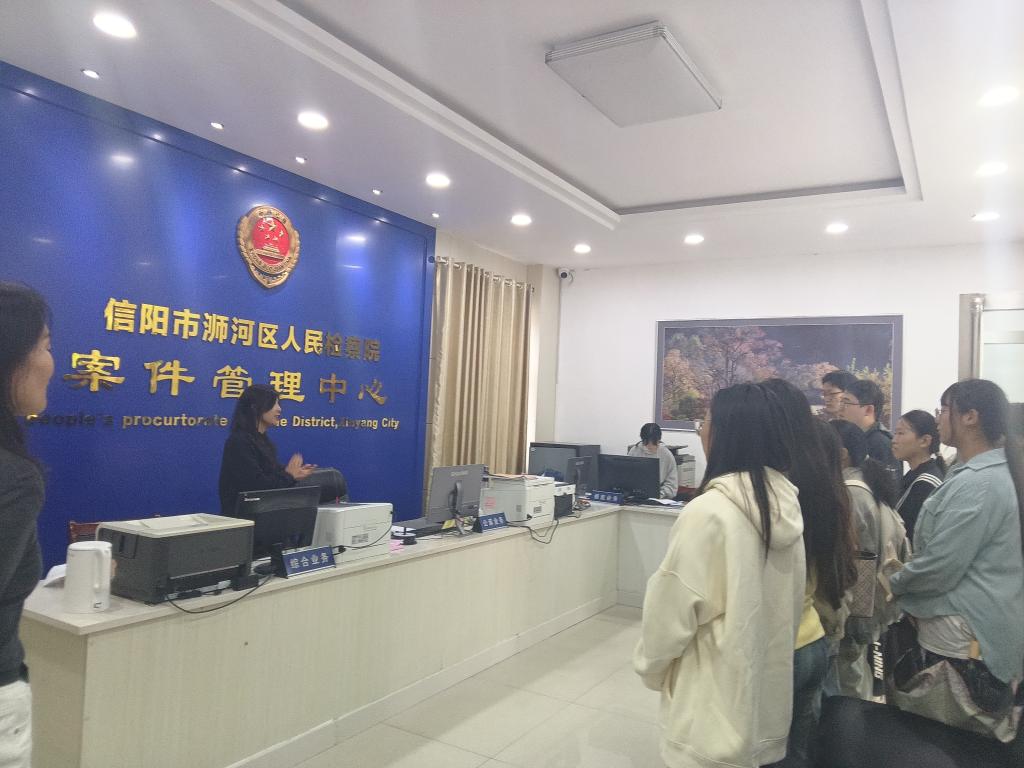 当天上午,在信阳市浉河区人民检察院员额检察官、综合业务部主任郑洁的引领下,师生有序参观了12309大厅、案件管理中心、检察院大厅、第一检察部、第二检察部、第三检察部、第四检察部以及第五检察部。每到一处,检察官向同学们详细讲解,并通过互动回答,让同学们直观感受检察职能以及检察官的工作流程。