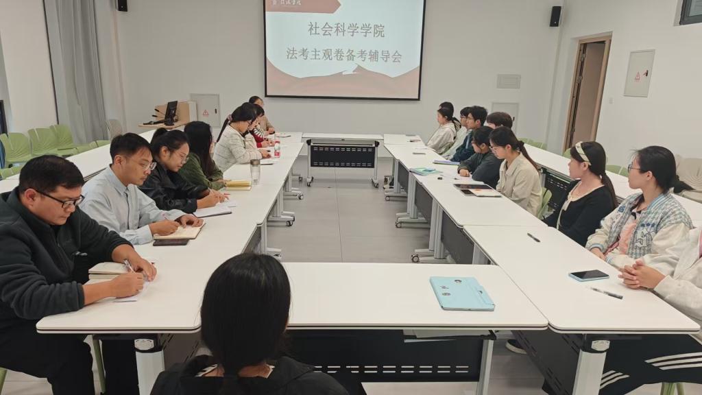 国家统一法律职业资格考试主观题考试在即,为进一步提高2026届学生法考主观题复习的效果,9月23日,太阳成集团tyc539在南湖校区教二楼509会议室举办法考主观题冲刺辅导会,法学专业副教授闫春丽、徐战辉、胡晶,青年教师王浩晨、韩宜蓉、徐月萍、张可、施蕊、郝艳以及2026届法学专业部分学生参与本次会议。