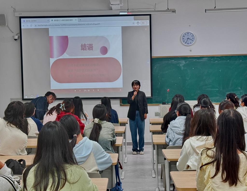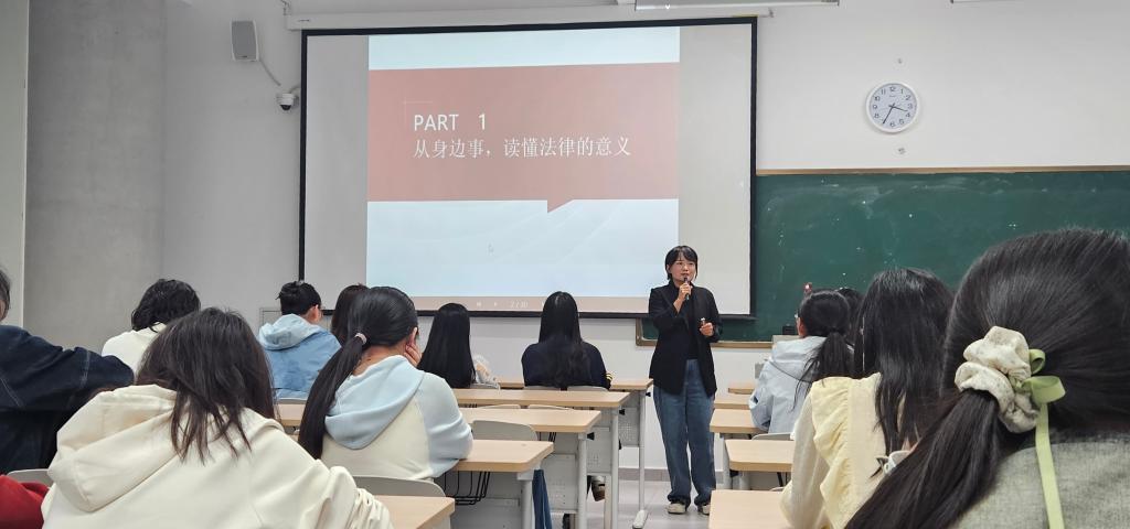 讲座最后,主讲人强调,大学生在享受宪法和法律赋予的权力同时,也需要履行相应的义务。“法律不是束缚自由的枷锁,而是保护权利的屏障,更是维护社会公平运转的规则。”她呼吁全体大学生主动尊法学法守法用法,不仅要将法治精神内化于心、外化于行,更要做到知行合一,在守护好个人青春成长之路的同时,以实际行动为弘扬社会主义法治精神、建设法治中国贡献青年力量。