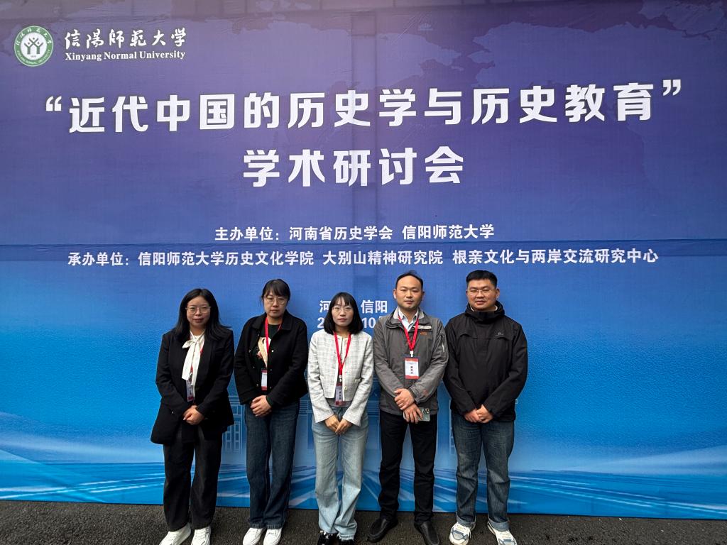 2025年10月11日,由河南省历史学会、信阳师范大学联合主办的 “近代中国的历史学与历史教育”学术研讨会在信阳召开。我院党总支副书记胡志国,骨干教师陈杰、代晓丽、王燕红、厉芳艺、文星豪等老师应邀参加。